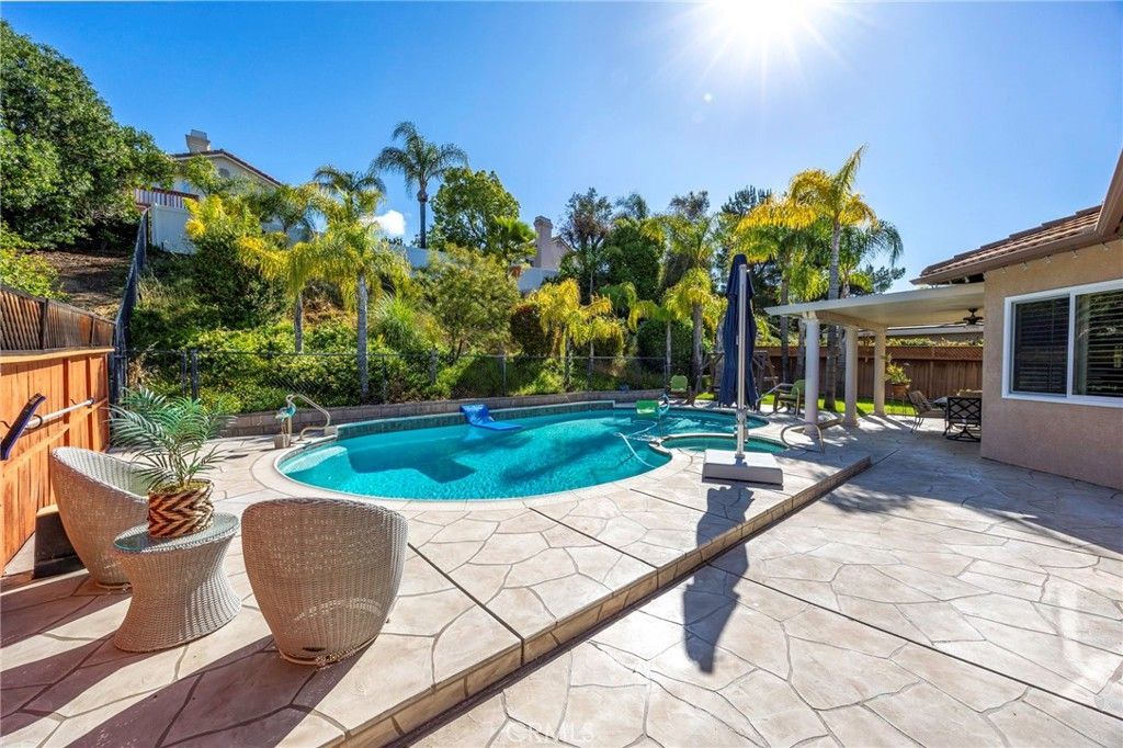Welcome to Chardonnay Hills ? one of Temeculas most sought-after communities, known for its multiple pools, parks, and spacious lots, all just moments from wine country. Summer is right around the corner, and this beautifully upgraded single-story 4 bedroom, 2 bath home is ready for it. Set on an oversized, private lot, the home features a sparkling pool, spacious three-car garage and backyard designed for both relaxation and entertaining. Inside, youll immediately notice the soaring 10-foot ceilings and abundance of natural light, enhanced by plantation shutters throughout. The home has been thoughtfully updated with new vinyl plank flooring, fresh interior paint, updated baseboards and casings, and a remodeled kitchen that anchors the main living space. Major system upgrades provide peace of mind, including paid-off solar, a recently completed new roof, a newer HVAC system (approximately four years old), and a new water heater. Step outside to your private backyard retreat, complete with pool and space to unwind, entertain, and enjoy Temeculas indoor-outdoor lifestyle. A new mister umbrella adds the perfect finishing touch for warm summer days. Located just minutes from Temeculas award-winning wineries, top-rated schools, and shopping, this home offers the perfect combination of comfort, upgrades, and location.